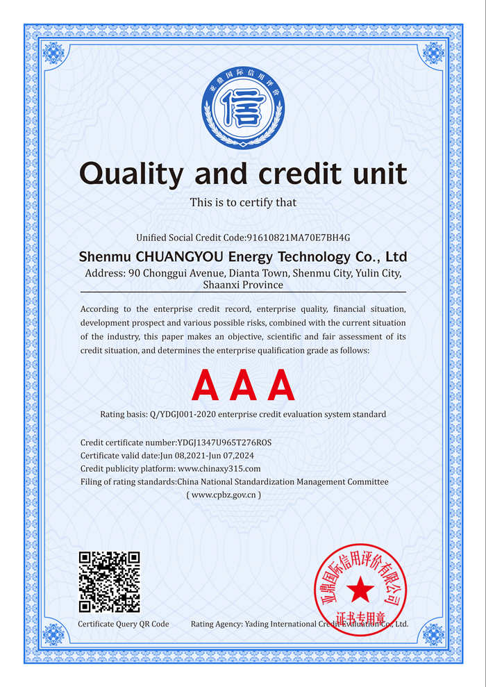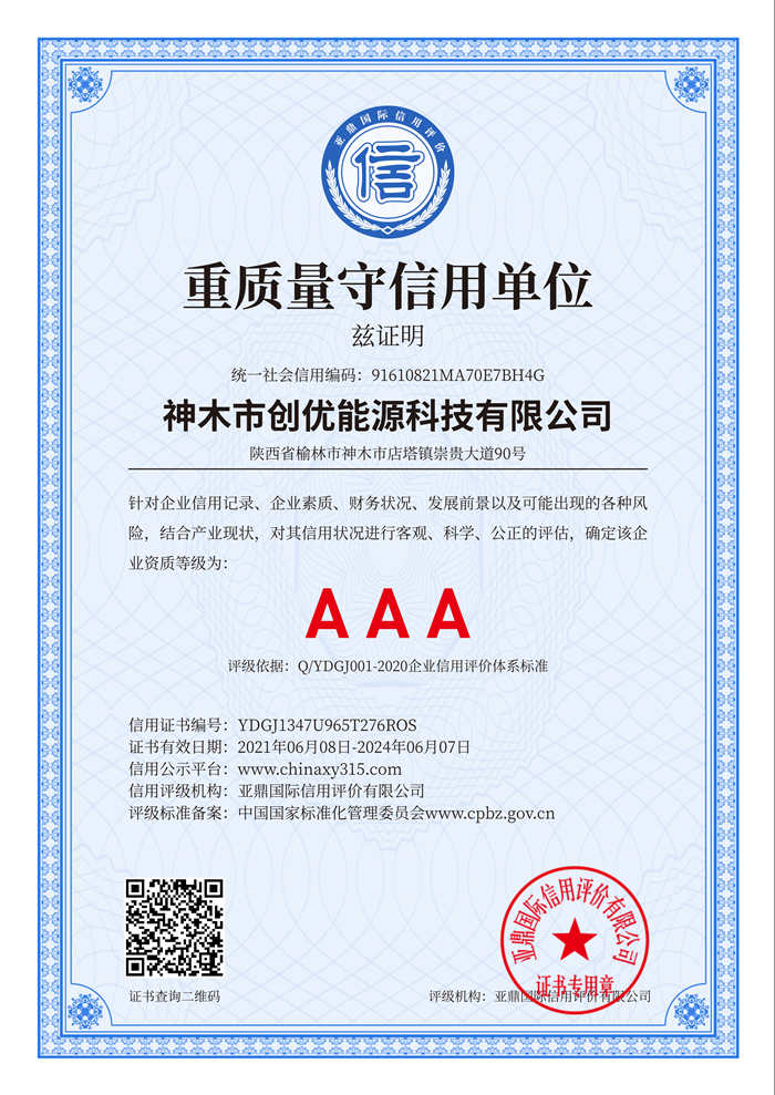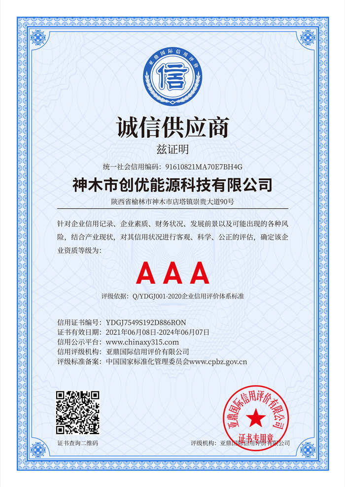 神木創優能源科技有限公司是一家專注于蘭炭新能源的研發、生產、銷售、運輸以及推廣利用的綜合性企業。前身始建于2009年,把握能源機遇,數十載煤炭煤炭經營,立足陜西,布局全國,公司一貫堅持“以人為本,技術升級,服務客戶,發展企業,造福員工,追求卓越”,憑借高質量產品,優質的服務產品暢銷全國近32個省市自治區直轄市。